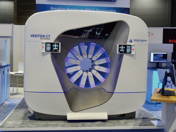 ガントリ内部に等間隔に配列された12個の検出器が体に密着し、360度同時にフルスキャンを行うことで、短時間での高画質な検査が可能になった。高い光子変換効率を有するCZT検出器を採用しており、「VERITON-CT 200」では40~200KeVの範囲内、「VERITON-CT 400」では40~400KeVの範囲内の各放射線同位体の主な散乱光子ピークについて正確な収集と補正を可能とし、一回の撮像で複数の機能情報を得ることができる。CTによる減弱補正と併せて、正確な病変部位の検出、SPECにおける定量化を行うことで、診断精度の向上が期待される。