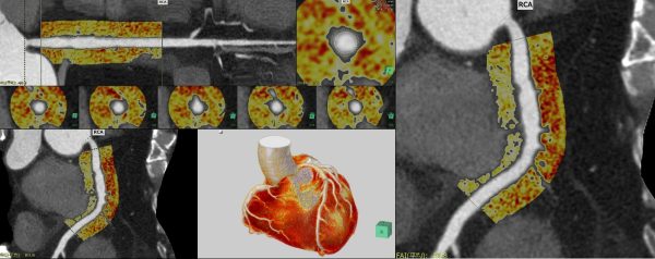 心臓の動きを補完してより滑らかな4D画像表現を行うことができる「心臓4Dビューア」を新たにラインアップする。非剛体位置合わせの補完技術により、拍動する心臓の4DCT画像から滑らかな4D画像表現が可能である。また、冠動脈解析(CT)内の機能として、血管周囲の炎症の指標として近年関心が高まっている冠動脈脂肪組織濃度(FAI)の計測機能を追加する。循環器領域のご要望に応える機能を搭載し、医療の質向上に貢献する。