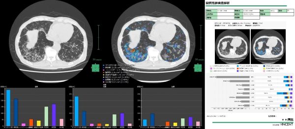 2025年にリリースした間質性肺疾患解析にも新たにレポート機能を搭載し、CT画像から定量評価した結果をレポートとしてアウトプットする一連のフローを「SYNAPSE VINCENT」で行うことができるようになる。