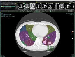 ③ 「SYNAPSE SAI viewer」の新バージョンでは、左右合計18区域に分かれる肺区域を認識してラベリングができるようになったため、提示する所見文の候補に肺結節の場所を示す肺区域の情報を含めることが可能。