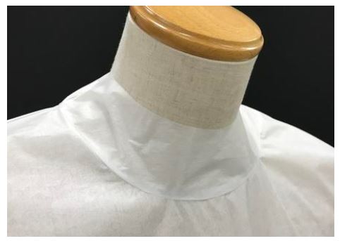 医療機関での使用を前提に、防水性能(AAMIレベル3)をクリアした使い捨てタイプのアイソレーションガウンです。基材に使用しているフィルムは、柔軟性があるためソフトで優しい肌触りとなっている。基材生産、縫製は国内で行う。