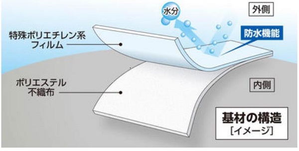 ■基材:ポリエステル不織布と特殊ポリエチレン系フィルムのラミネート基材