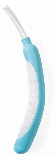 「ピュアウィック™ 女性用体外式カテーテル」女性の尿道口に装着して尿を回収する女性用体外式カテーテル。湾曲した本体の柔らかいガーゼ面から尿を吸い取る仕組みで非侵襲的な排尿管理が可能なデバイスです。8~12時間ごとに交換し脚の間に挟むだけのため、取り換えにかかる負担を少なくすることができる。