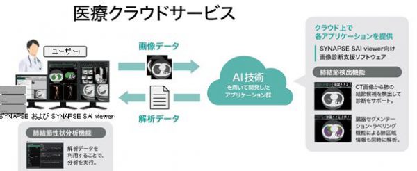 今後、「医療クラウドサービス」は、「SYNAPSE SAI viewer」向けの画像診断支援機能に加えて、当社の3 次元画像解析システムや医療機器向けオプション機能など、提供する機能・ソフトウェアを順次拡張していく予定だ。
