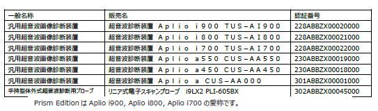 Aplio i-series / Prism Editionに搭載される新機能の一部は、Aplio a550, Aplio a450, Aplio a / Verifiaにも搭載される予定だ。